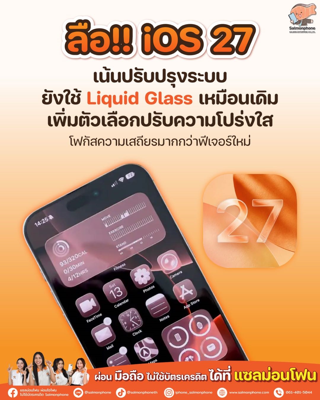 ลือ iOS 27 รอบนี้เน้นปรับปรุงระบบ แต่ยังใช้ Liqui Glass เหมือนเดิมกับ iOS 26